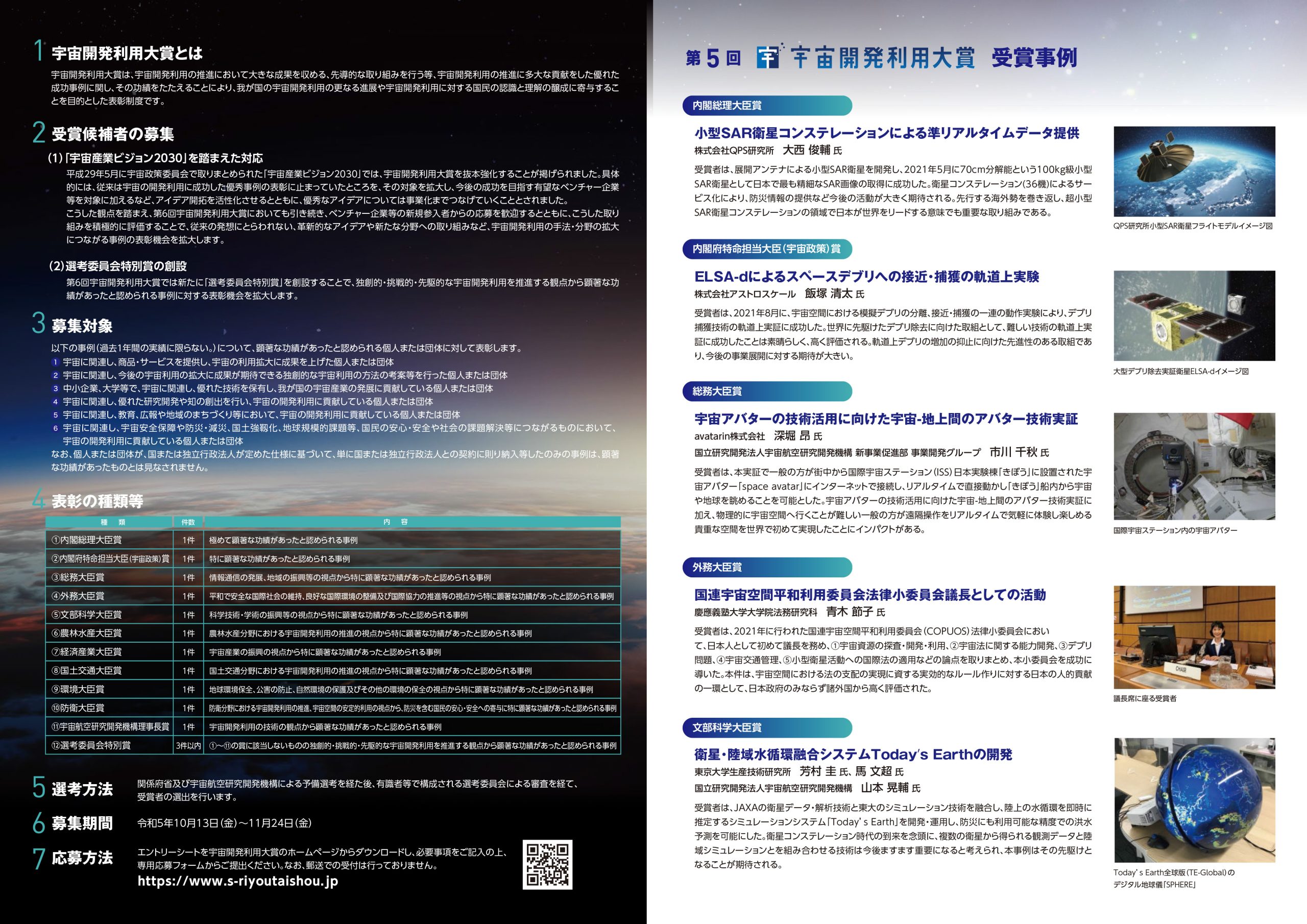 詳しくは、第6回宇宙開発利用大賞ウェブサイトをご覧ください。